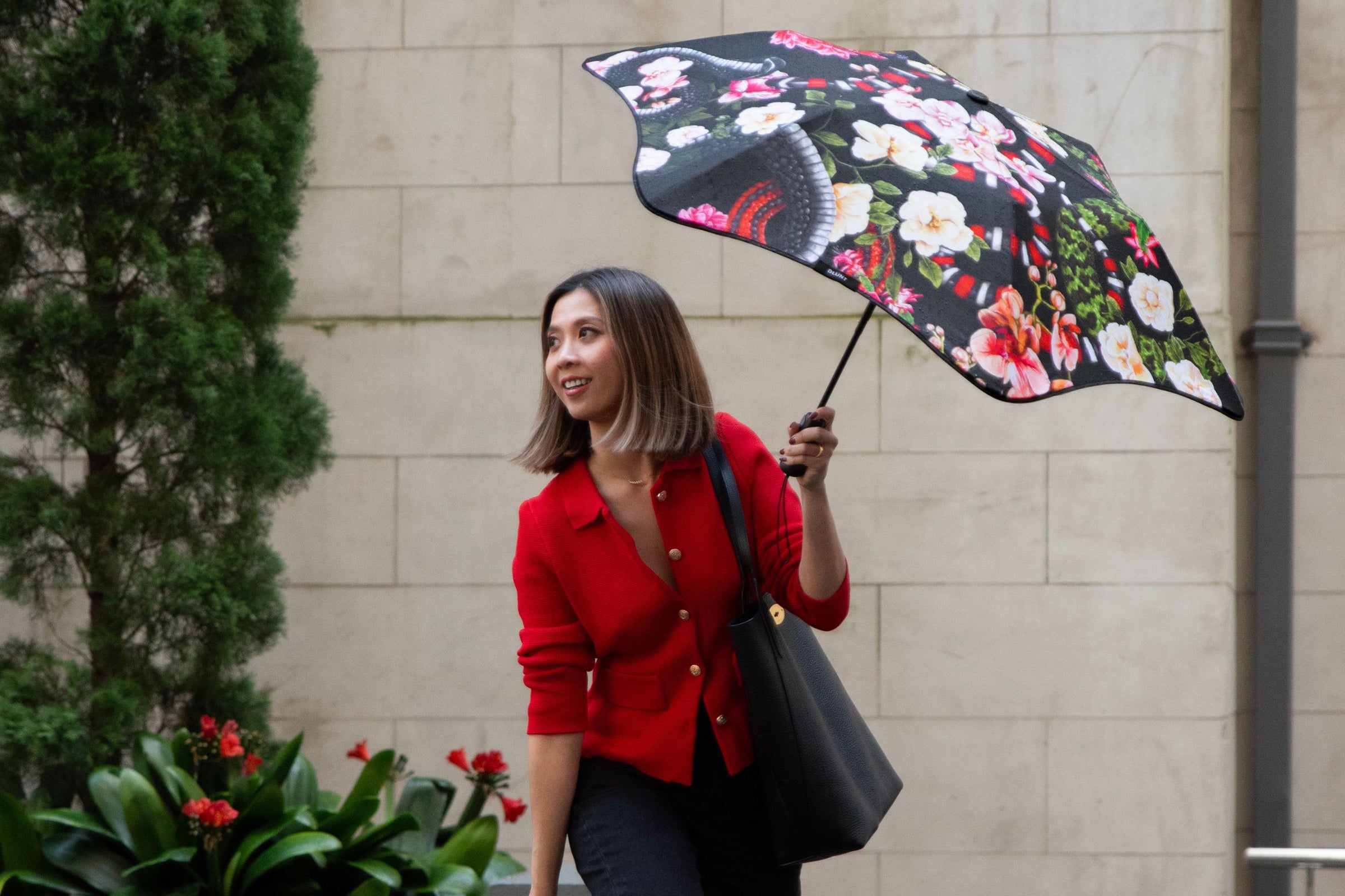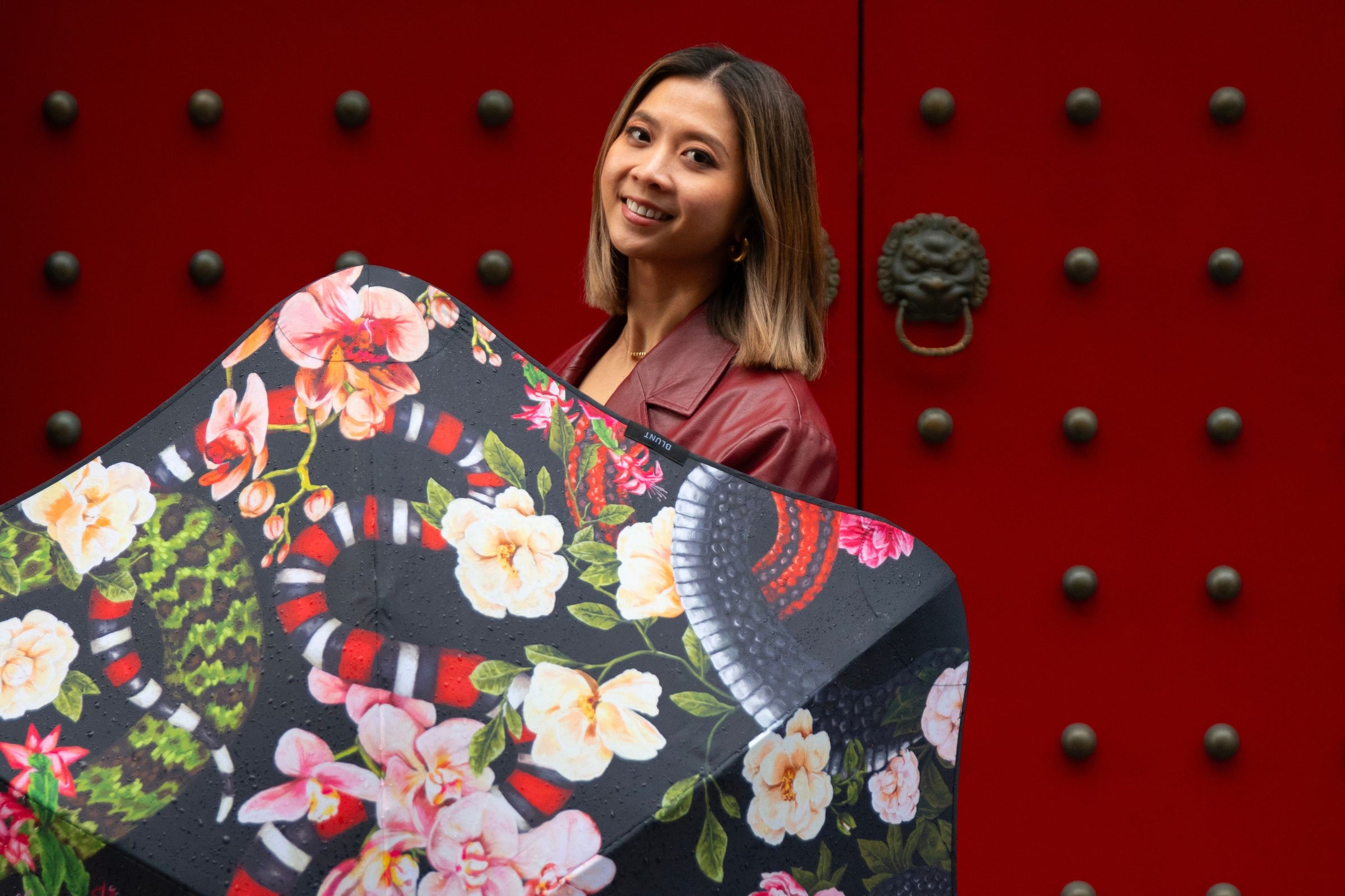 Unleash your wild side with the bold BLUNT Serpentine umbrella. The striking black canopy features intricate snake and floral illustrations, symbols of transformation, renewal, and good fortune, inspired by Chinese folklore and nature.