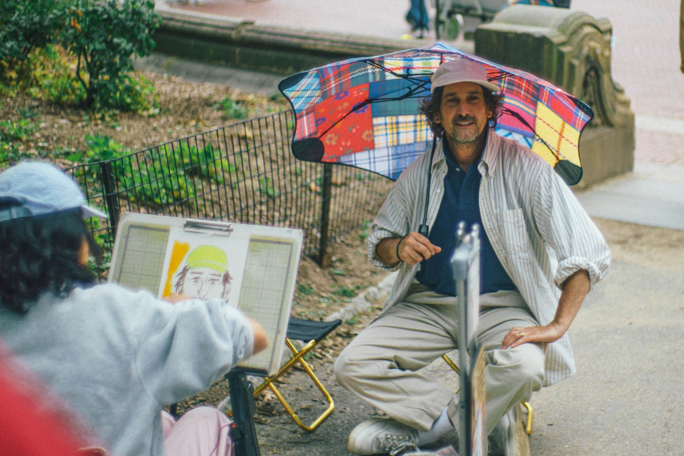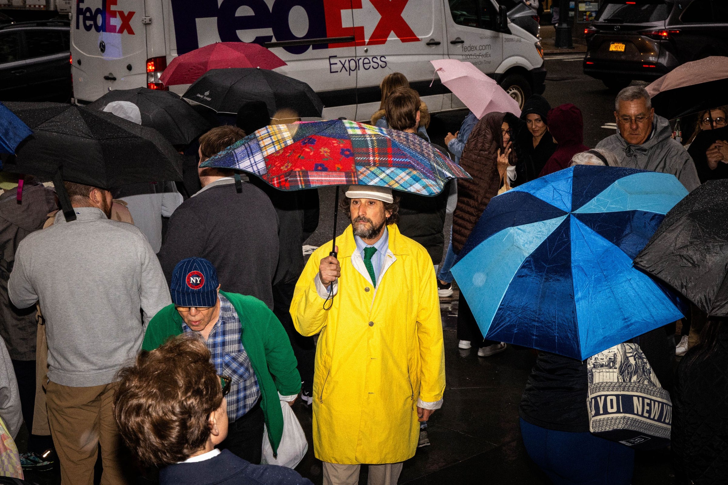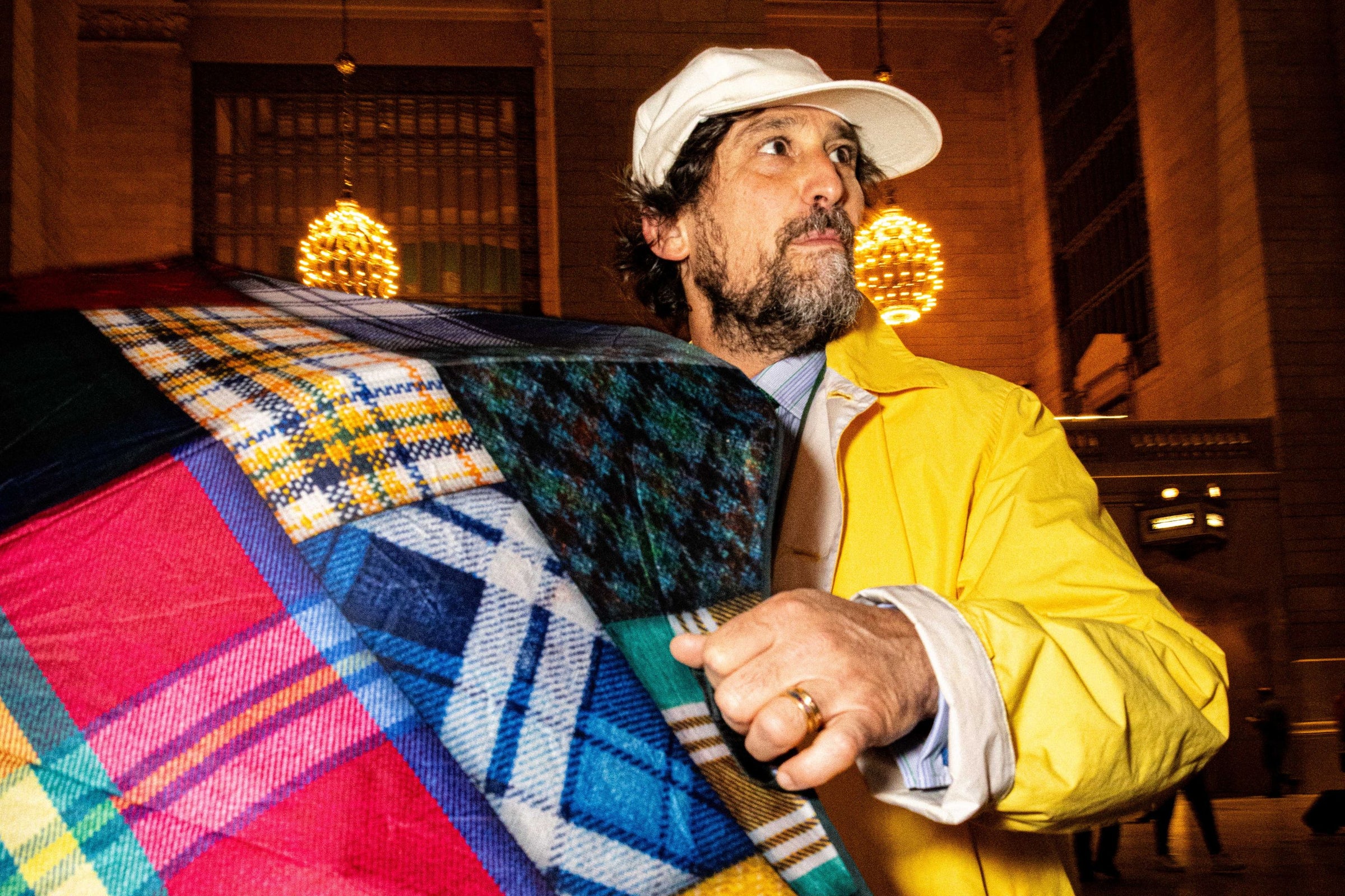Mordechai Rubinstein has spent his career capturing everyday style with an eye for authenticity. Featured in GQ, The New York Times and Vogue, he has also worked with Levi’s and Marc Jacobs, always bringing his own distinctive take. For this collaboration, he drew from his own wardrobe, collaging tweed, plaid and wool into a canopy that, in his words, celebrates “the most interesting fashion off the runway.”