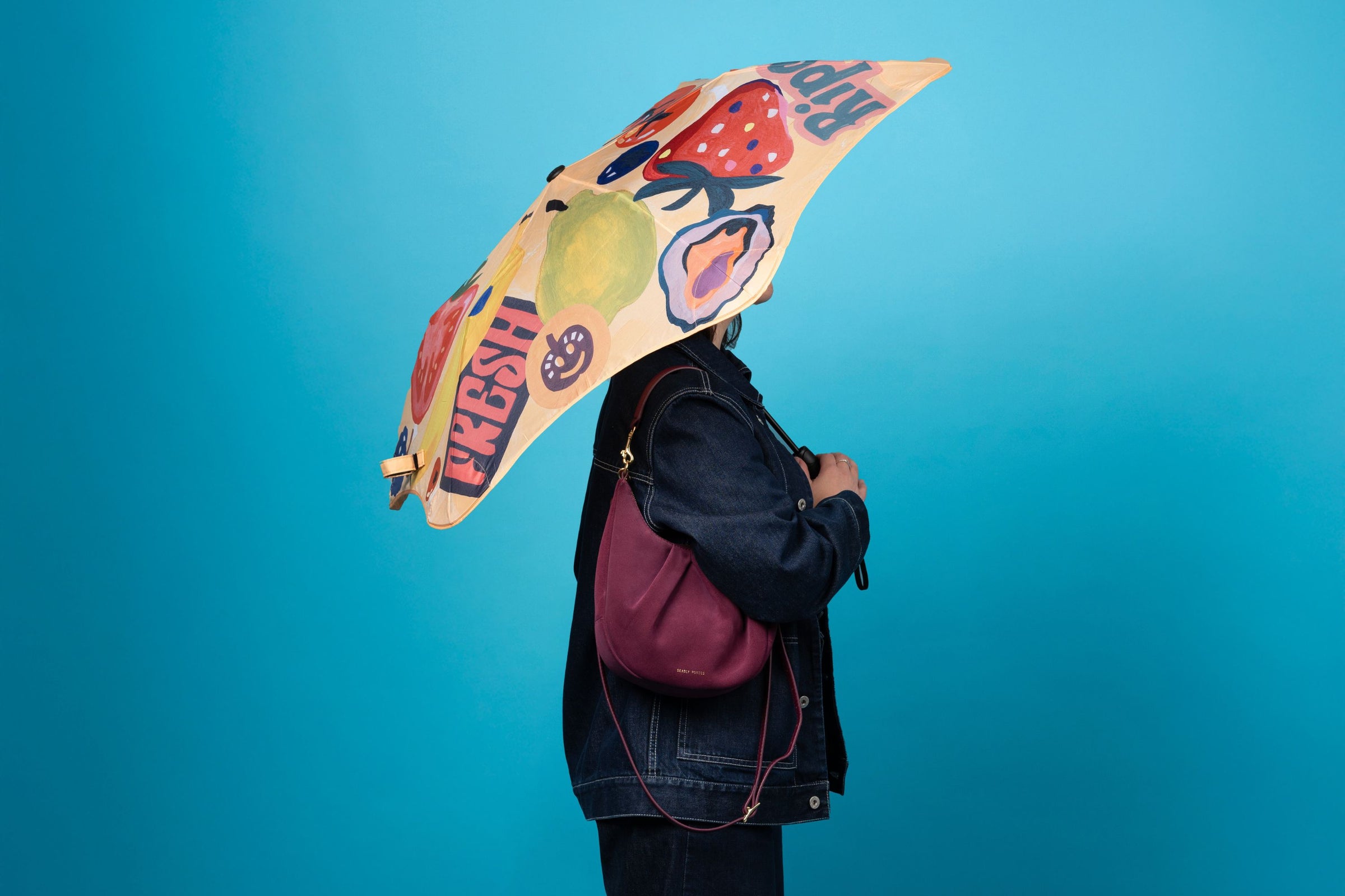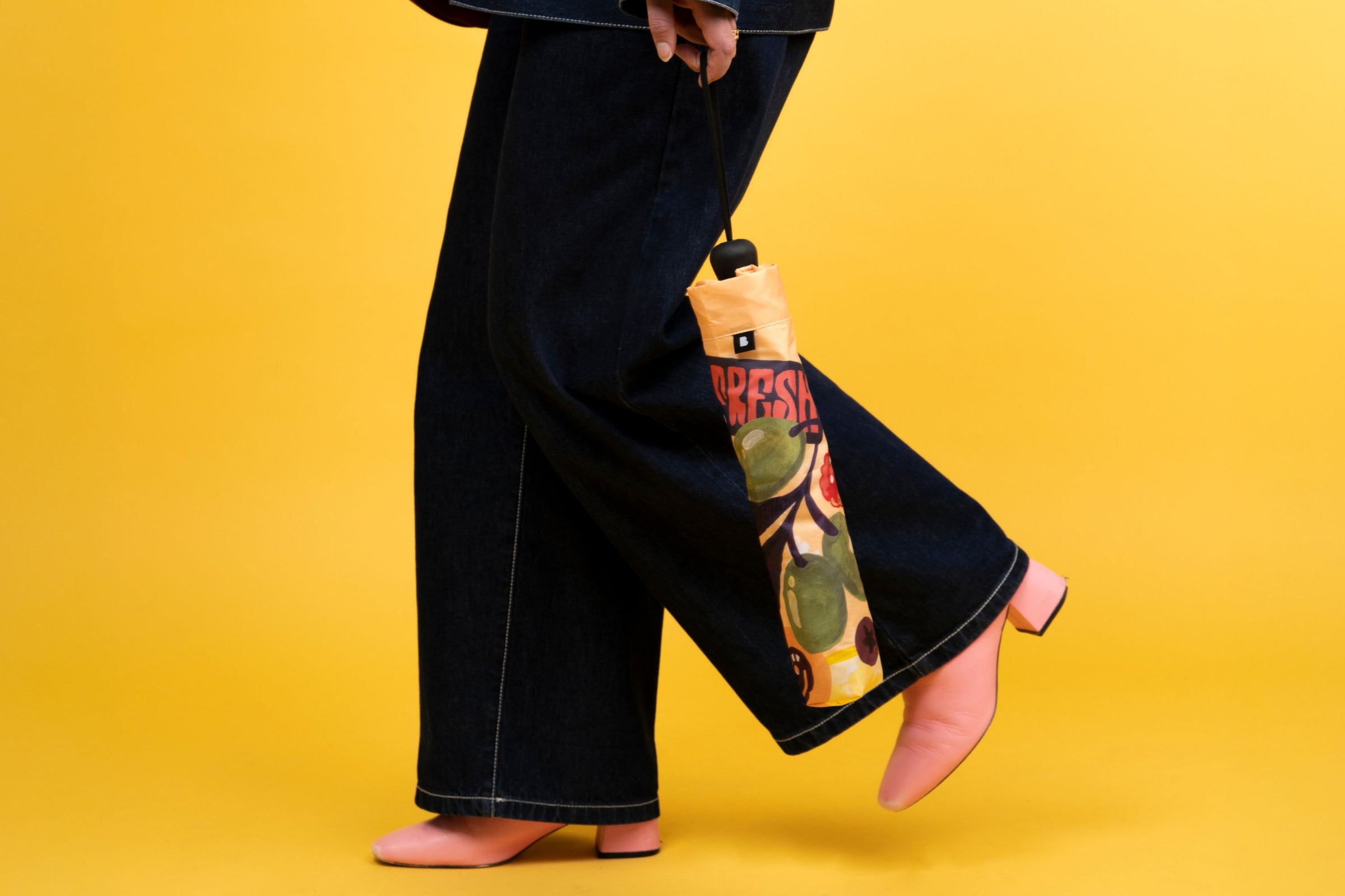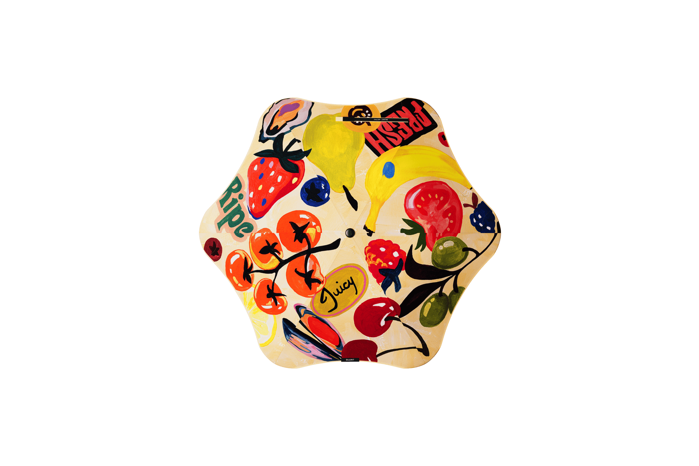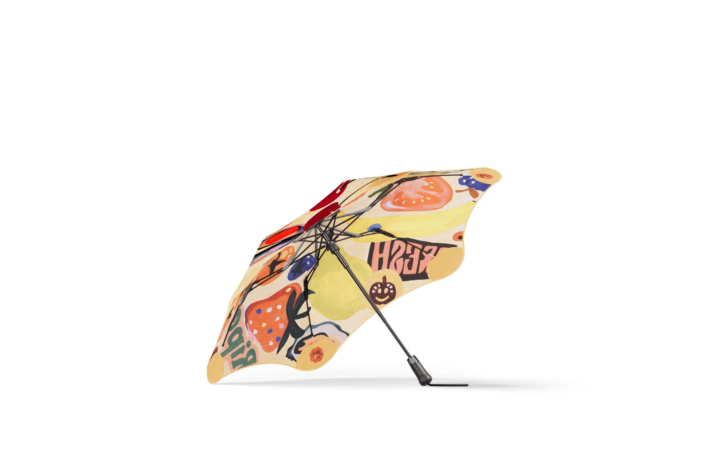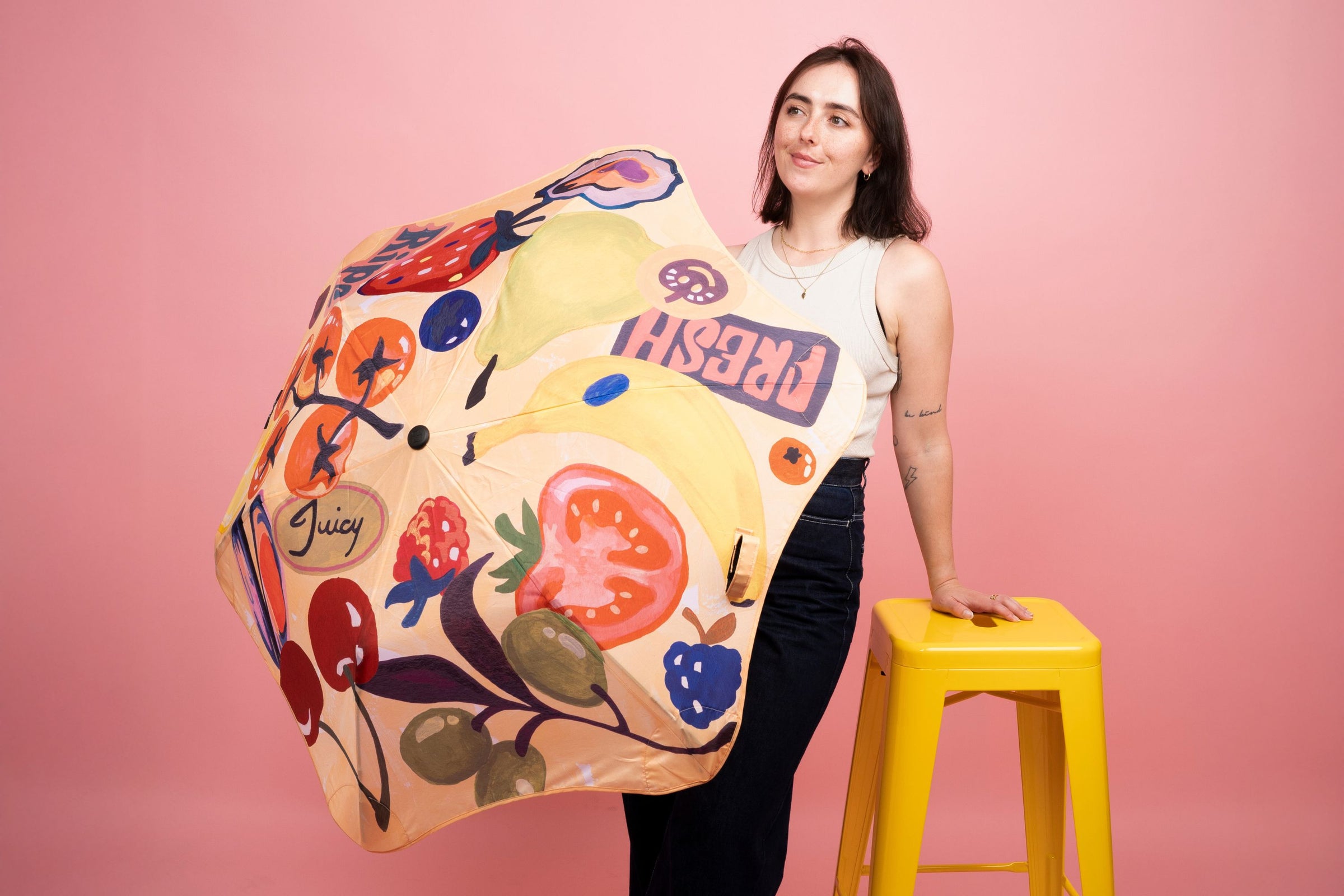 Artist Bonnie Brown, the creative force behind Studio Bon, brings her signature bold colour and playful charm to our latest limited edition BLUNT Umbrella. It’s a little bit cheeky, think ‘5+ a day’ meets childhood nostalgia, like stealing lemons from a neighbour’s tree or trusting an honesty box on a country road.