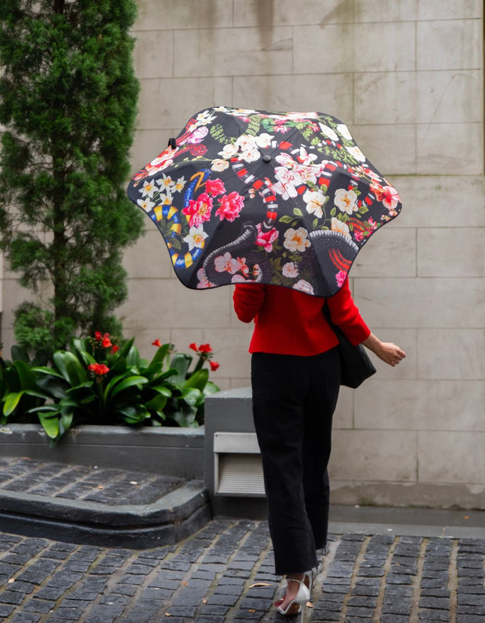 Unleash your wild side with the bold BLUNT Serpentine umbrella. The striking black canopy features intricate snake and floral illustrations, symbols of transformation, renewal, and good fortune, inspired by Chinese folklore and nature.