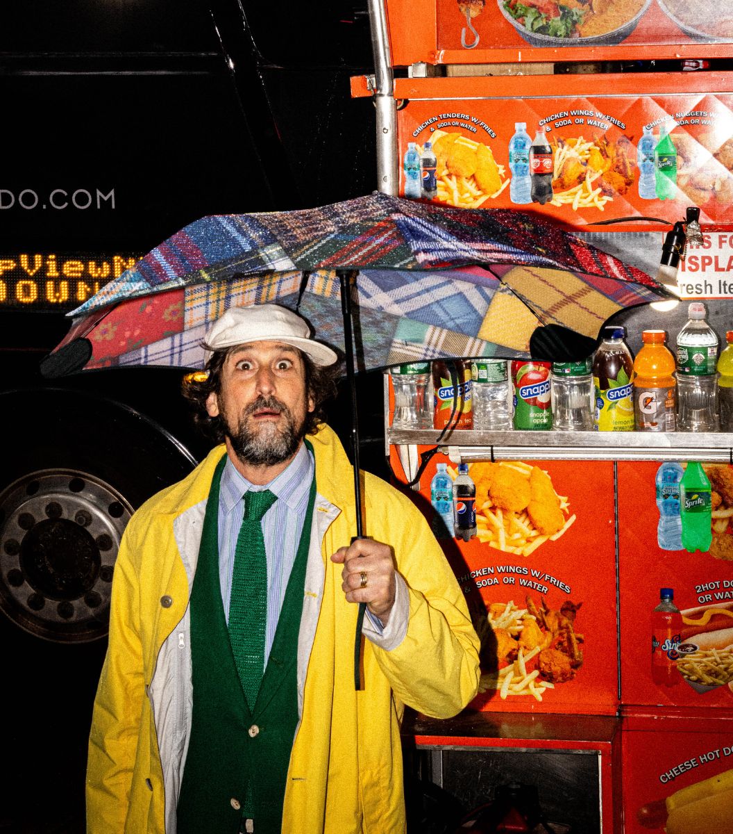 Mordechai Rubinstein has spent his career capturing everyday style with an eye for authenticity. Featured in GQ, The New York Times and Vogue, he has also worked with Levi’s and Marc Jacobs, always bringing his own distinctive take. For this collaboration, he drew from his own wardrobe, collaging tweed, plaid and wool into a canopy that, in his words, celebrates “the most interesting fashion off the runway.”