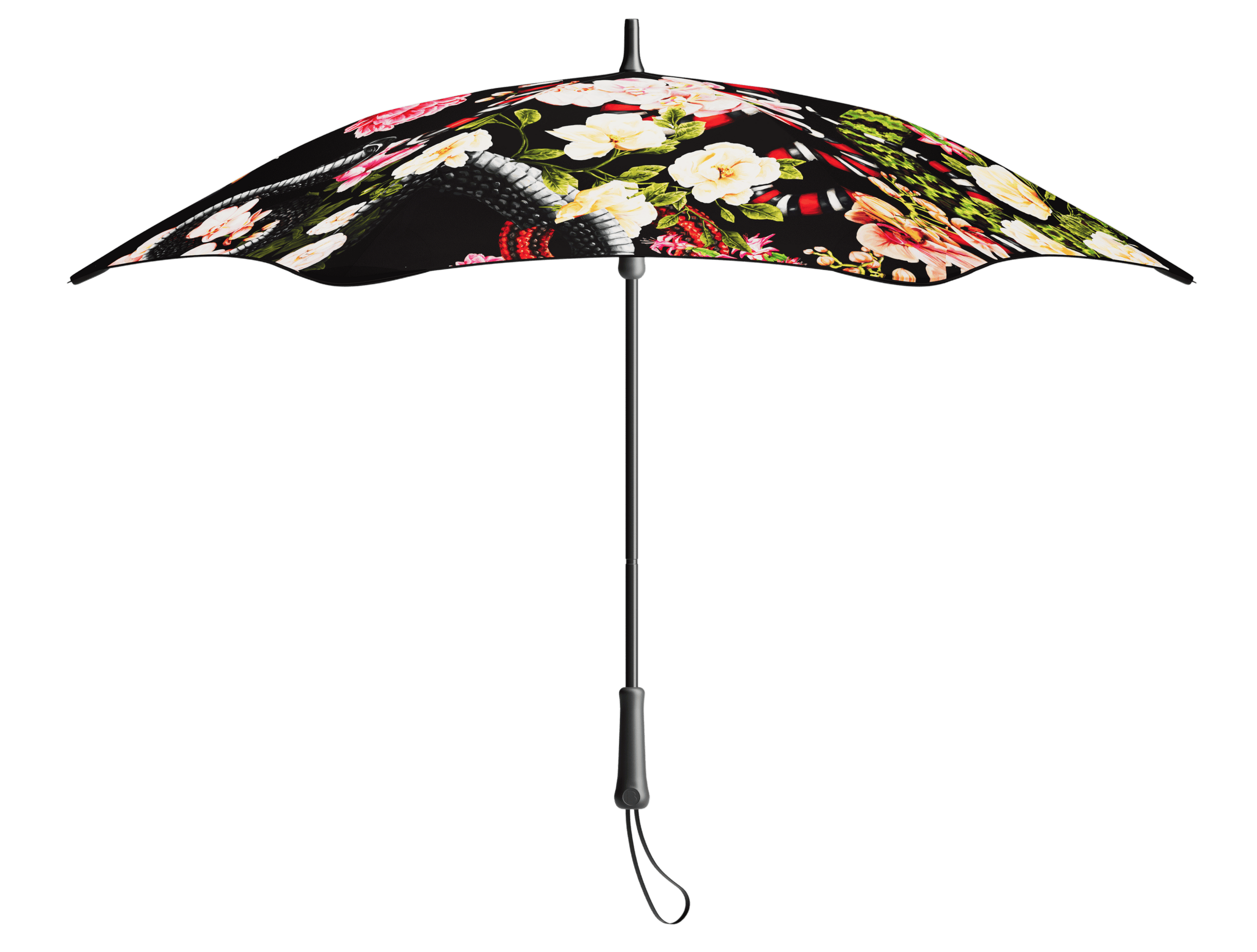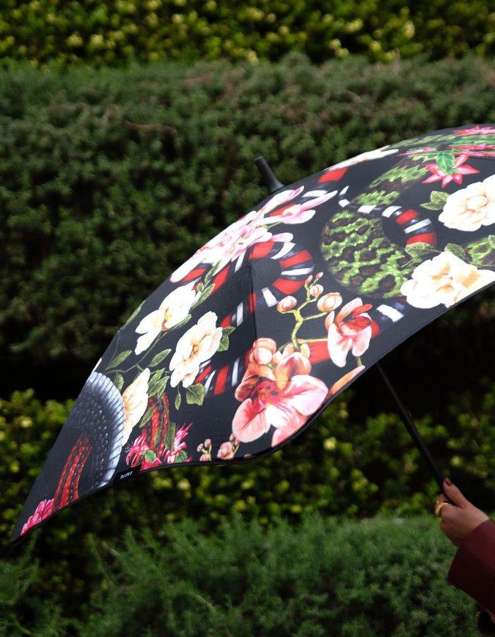 Unleash your wild side with the bold BLUNT Serpentine umbrella. The striking black canopy features intricate snake and floral illustrations, symbols of transformation, renewal, and good fortune, inspired by Chinese folklore and nature.