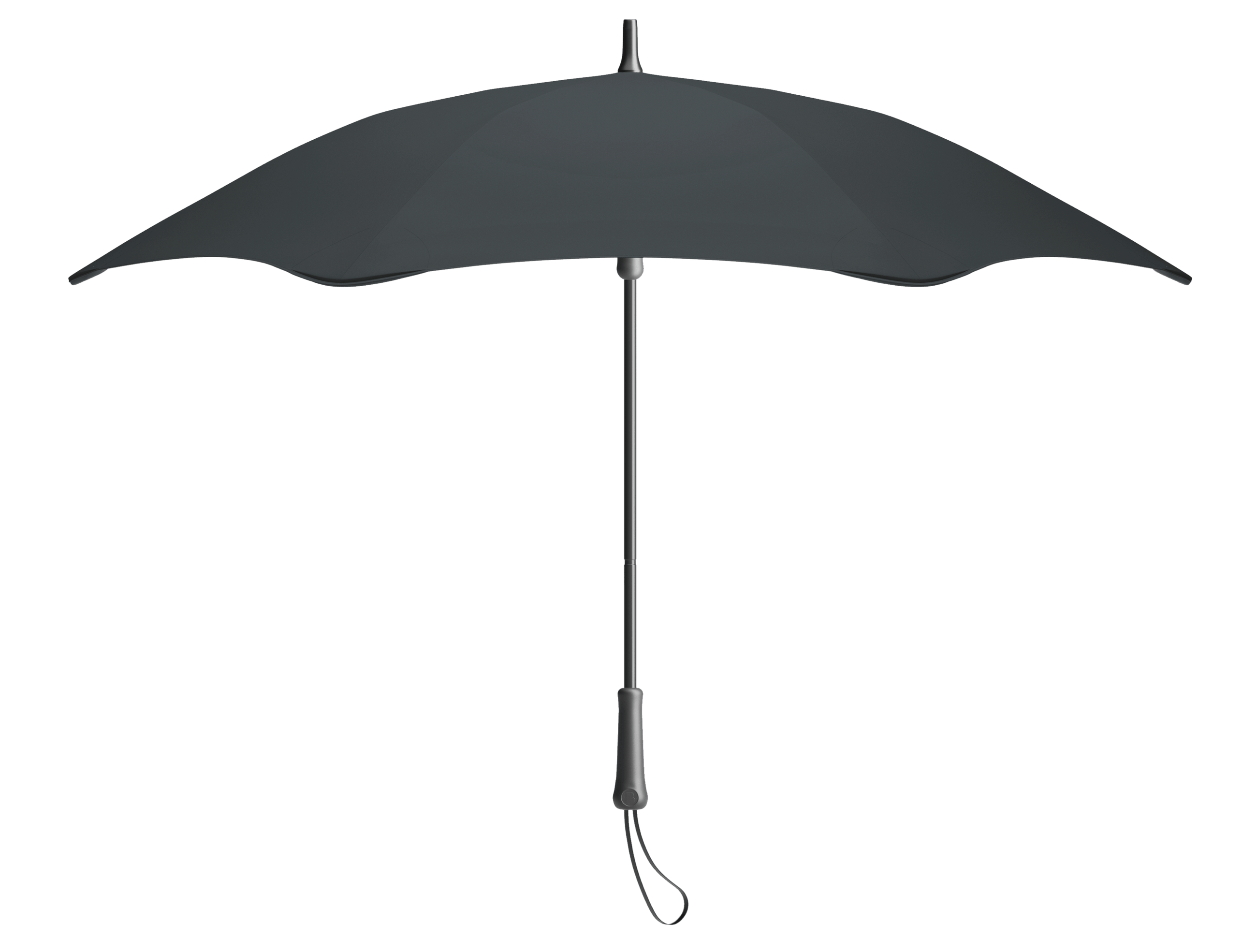 The BLUNT Umbrella frame features a unique strut mechanism that stresses the ribs, creating an effortless outward tension in the canopy as the umbrella is opened.