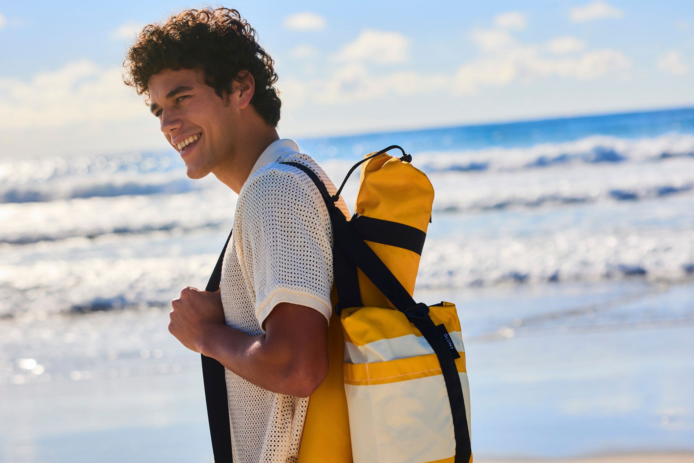 Crafted from recycled PET with a plant-based waterproof coating, the canopy offers 50+ UPF protection to keep you safe under the sun. Six patented tips create a taut, aerodynamic form, with Velcro tabs for easy removal and replacement.