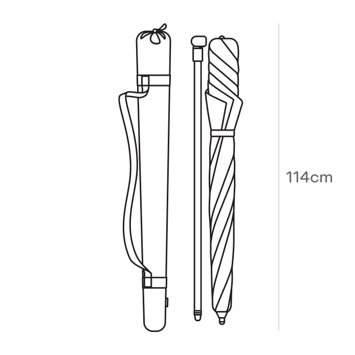 With a 1.9m diameter canopy, this beach umbrella slips into its sleek carry bag for easy transport.